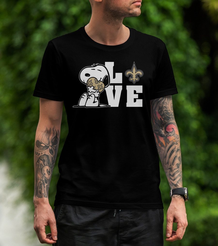 Snoopy Love New Orleans Saints Fleur-de-Lis Hug T-Shirt