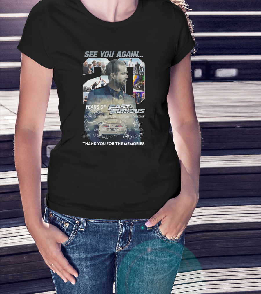 See You Again 20 Years Of Fast And Furious Thank You For The Memories T-Shirt