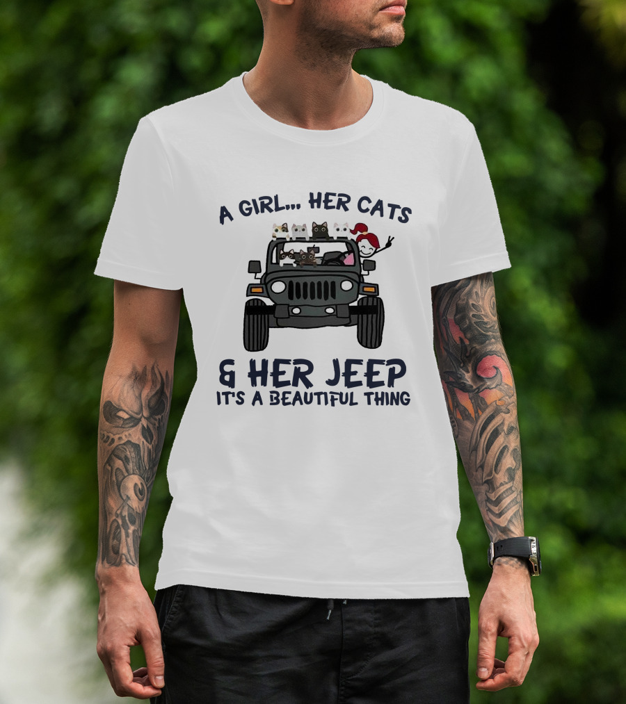 A Girl Her Cats And Her Jeep It's A Beautiful Thing T-Shirt