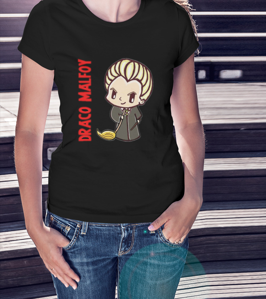 Draco Malfoy Chibi Character With Broom T-Shirt