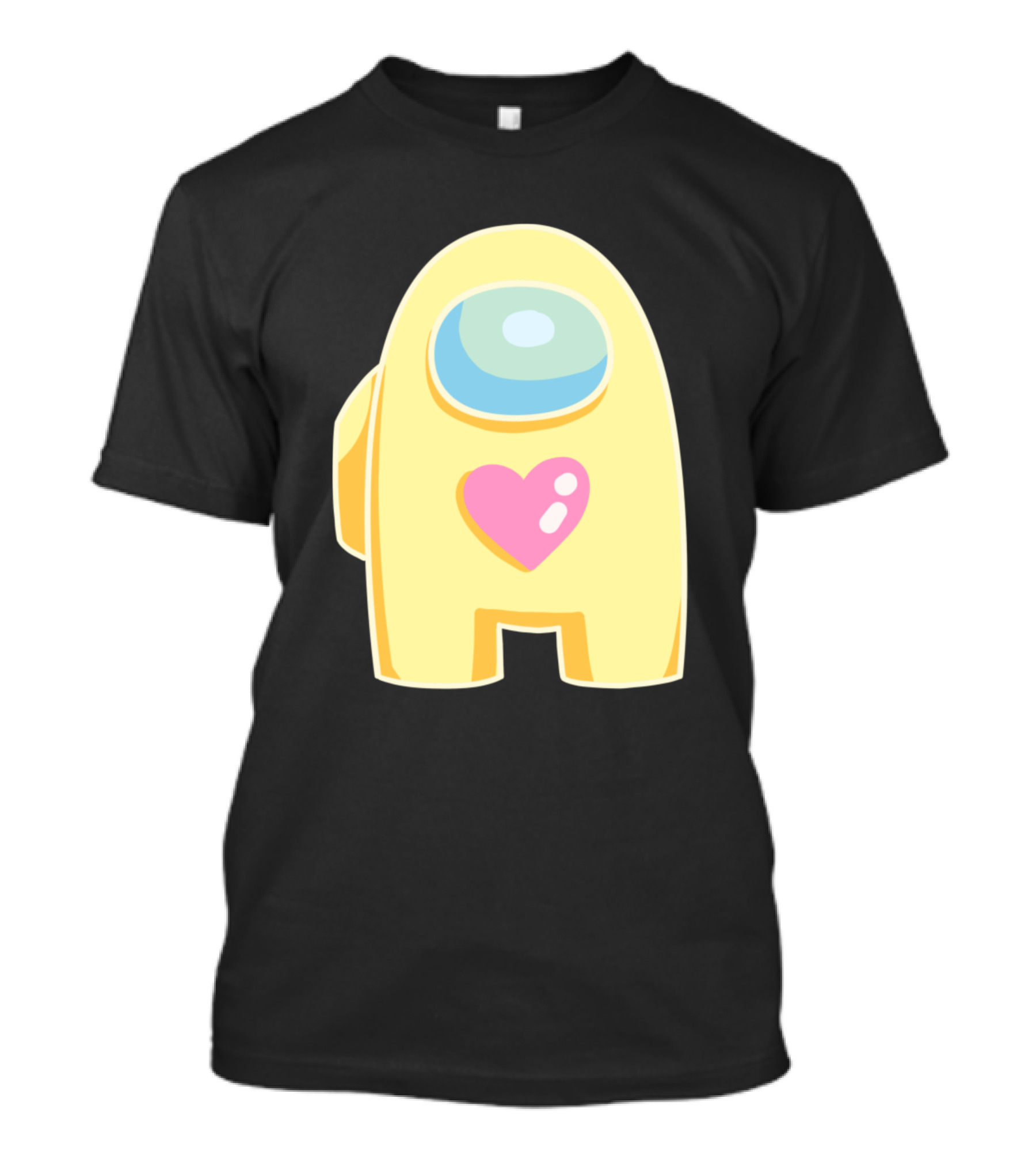 The Yellow Among Us Crewmate Heart Emblem T-shirt is designed for everyday wear and a consistent fit. Fabric is pre-shrunk ring-spun cotton with durable stitching. See the size chart below for exact measurements.
