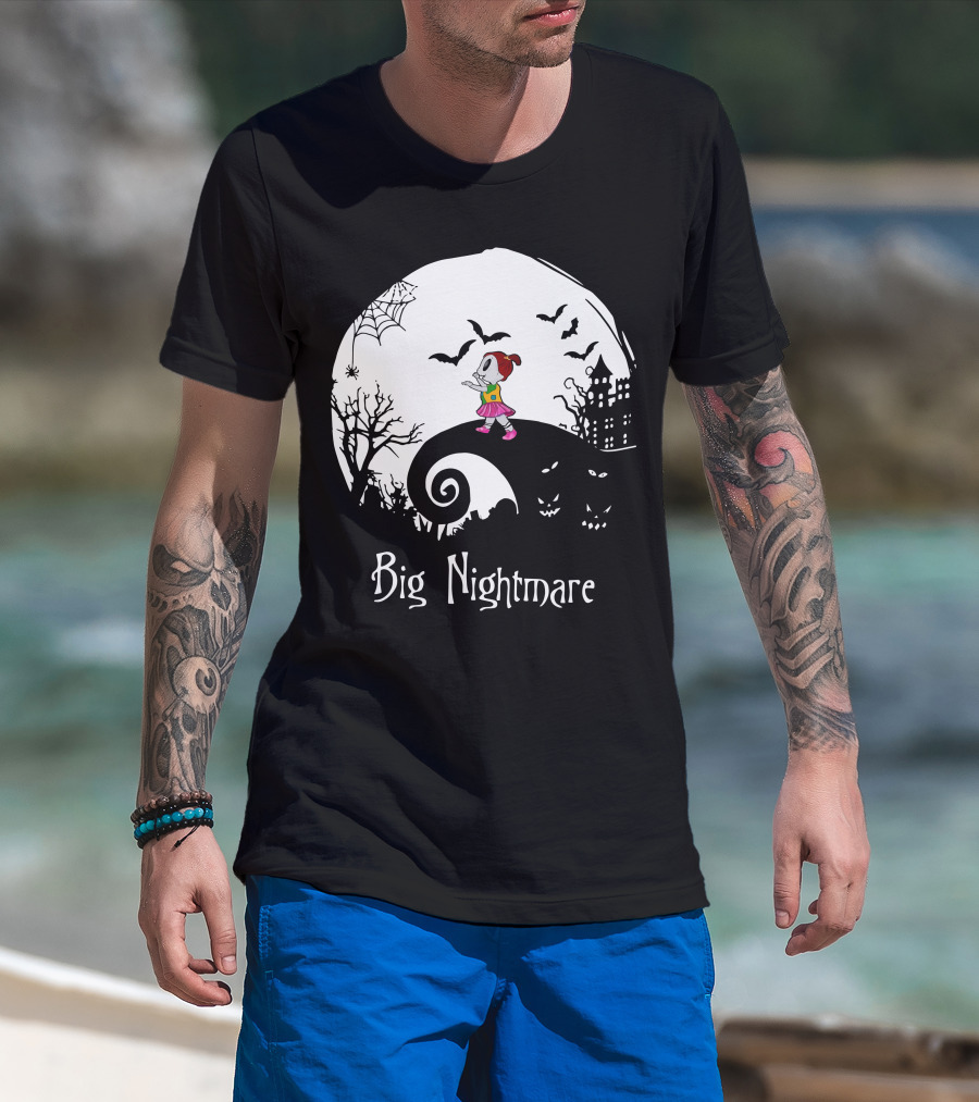 The Big Nightmare Girl Halloween Scene T-shirt is designed for everyday wear and a consistent fit. Fabric is pre-shrunk ring-spun cotton with durable stitching. See the size chart below for exact measurements.