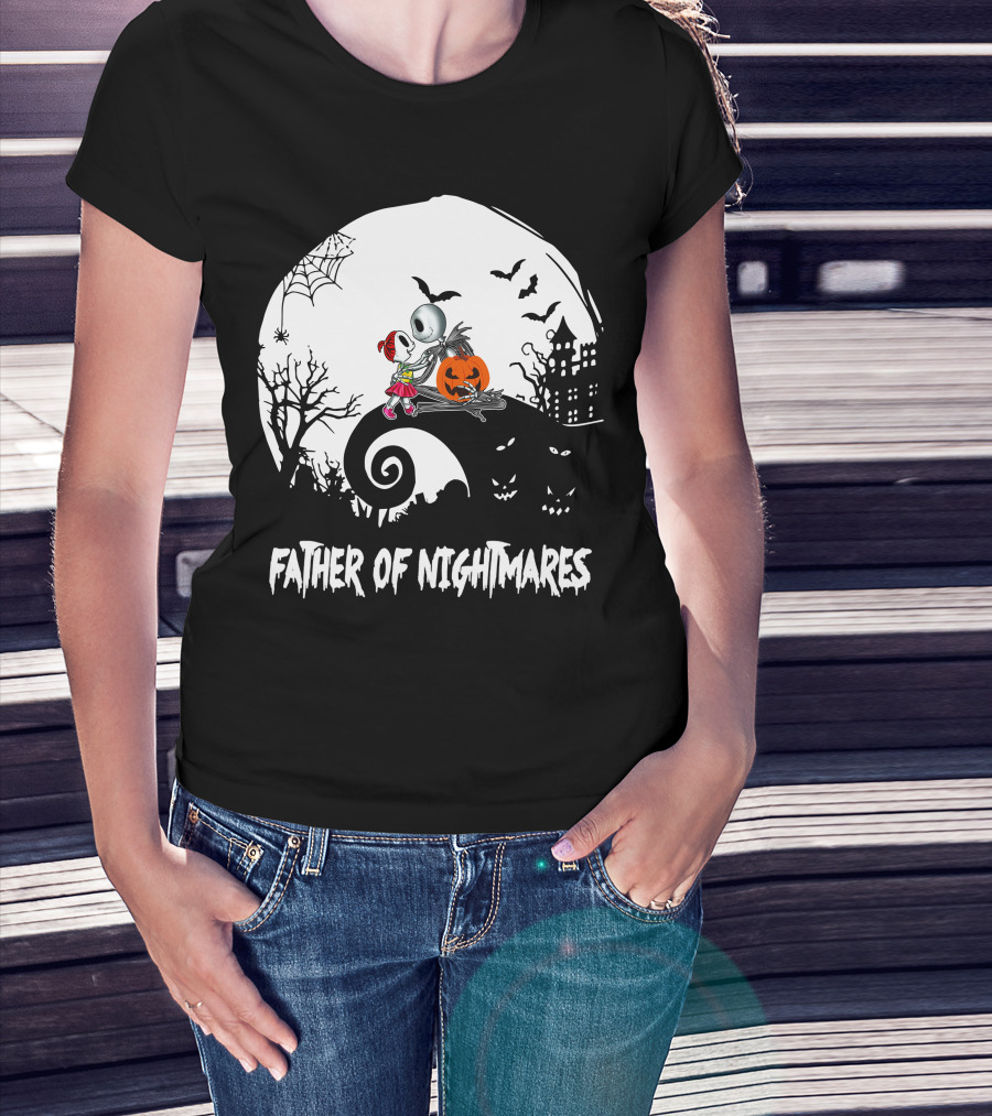 Father Of Nightmares Halloween Scene With Pumpkin And Skeleton T-Shirt