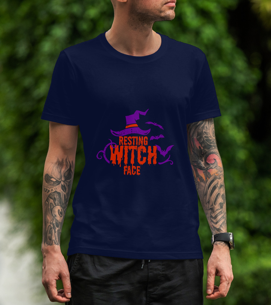 Resting Witch Face Witch Hat Bats Halloween T-Shirt