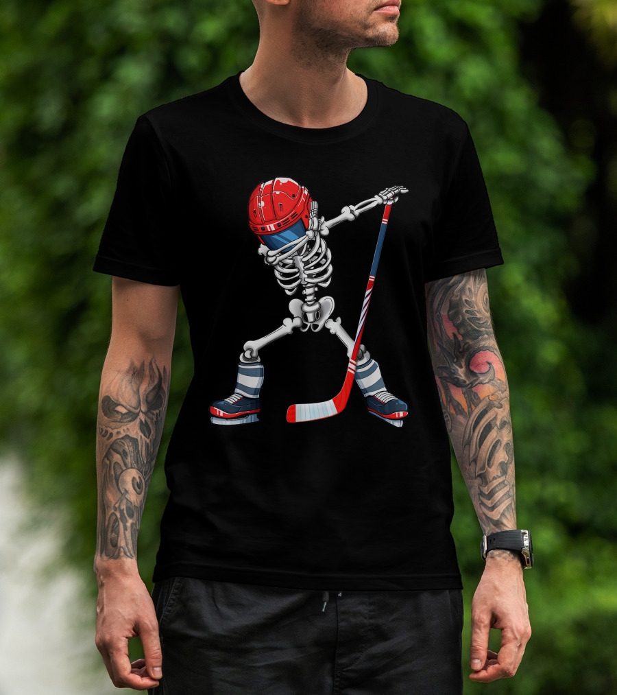 Dabbing Skeleton Ice Hockey Player Helmet And Stick T-Shirt