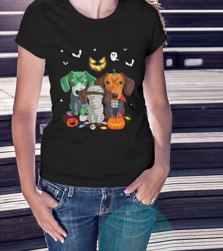 Halloween Dachshund Dog Witch Cute Dachshund Dog Lovers Zombie Mummy Pumpkin Costume Dogs T-Shirt