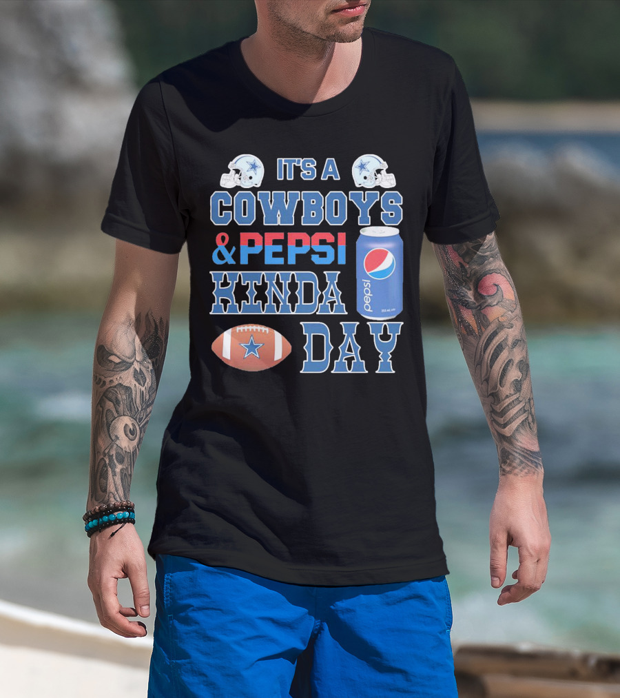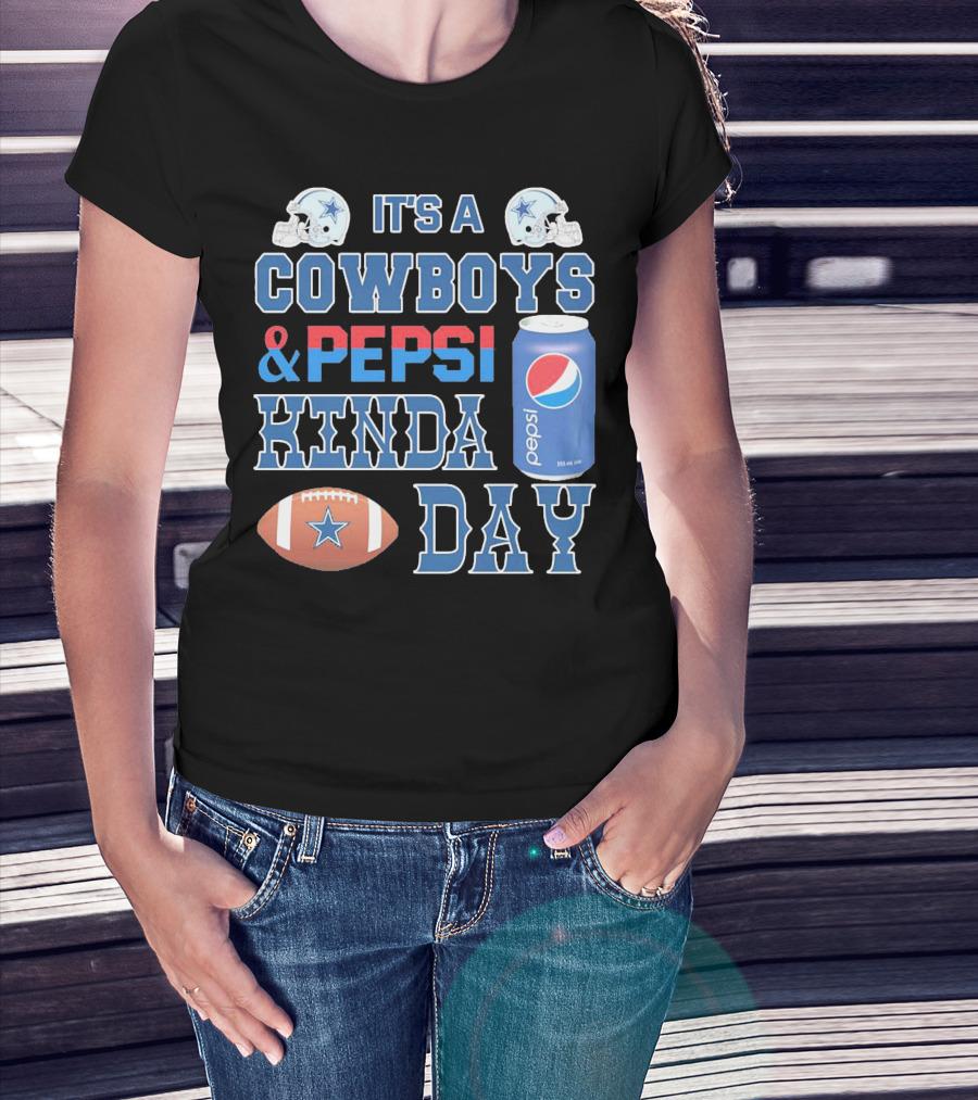 It's A Cowboys And Pepsi Kinda Day Football And Soda Can With Helmets T-Shirt
