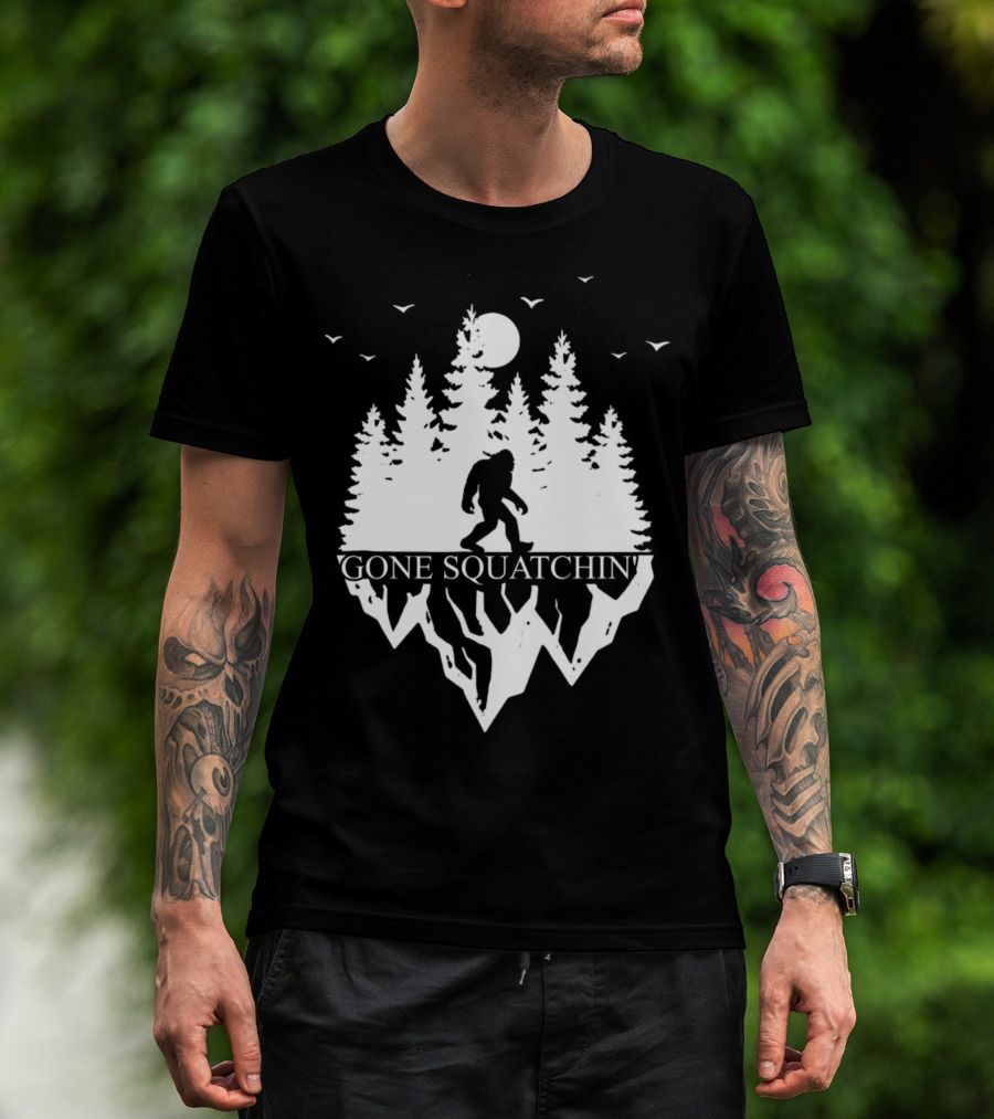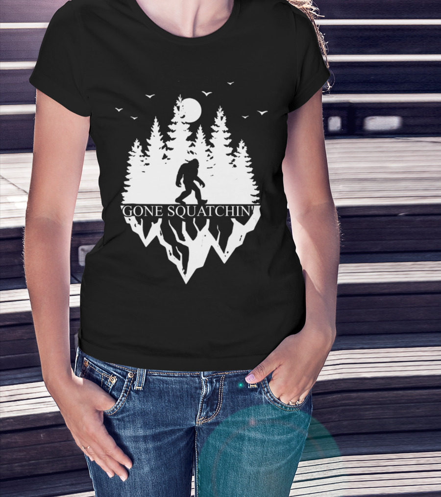 Gone Squatchin' Bigfoot Camping Moonlit Forest Adventure T-Shirt