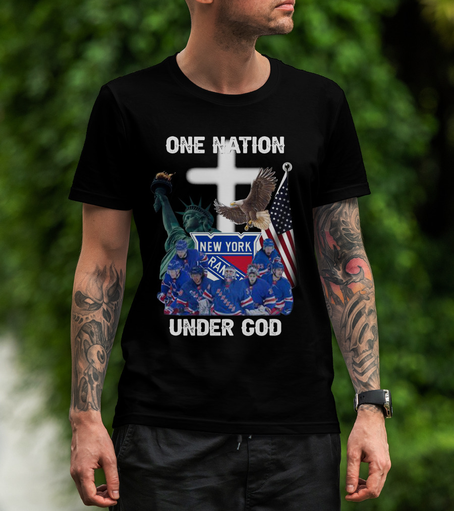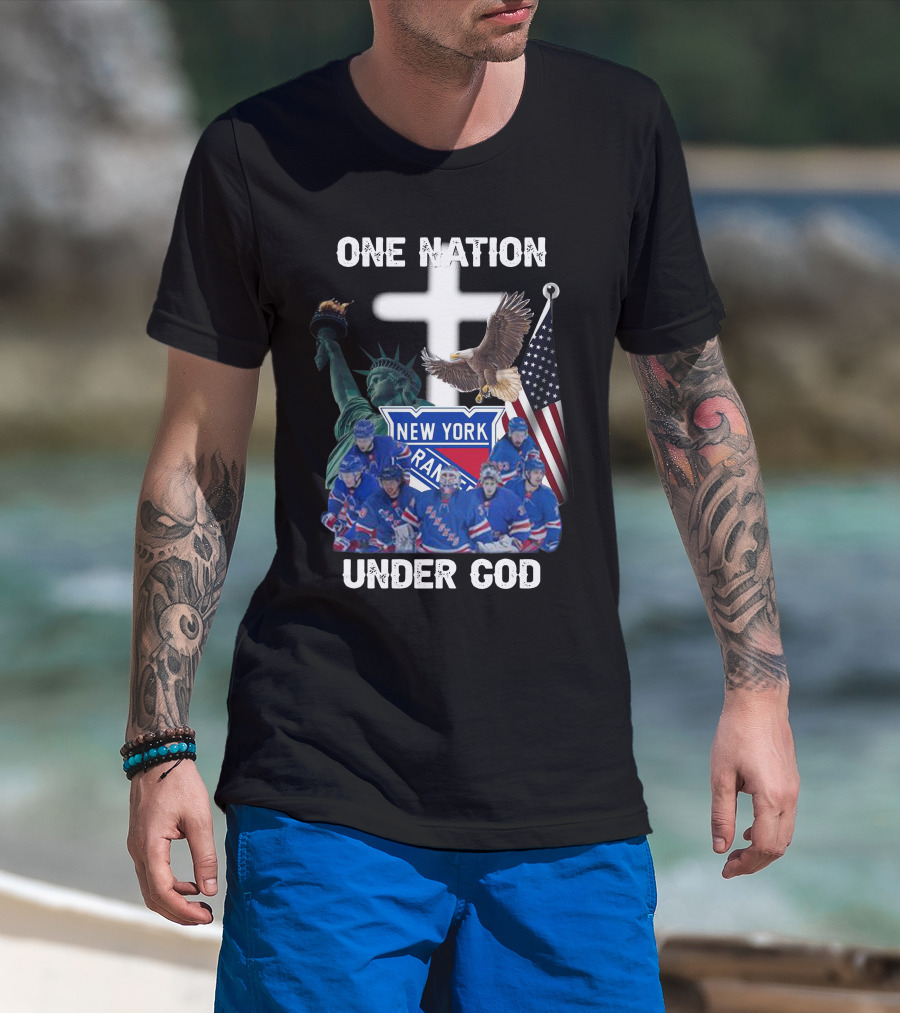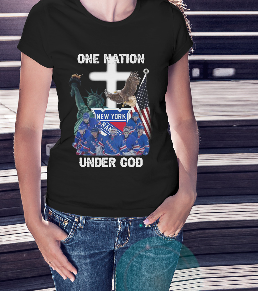 New York Rangers One Nation Under God Statue Of Liberty Flag And Eagle T-Shirt