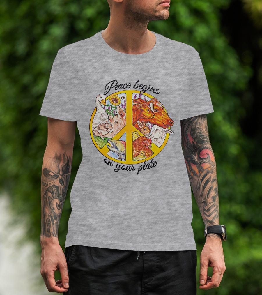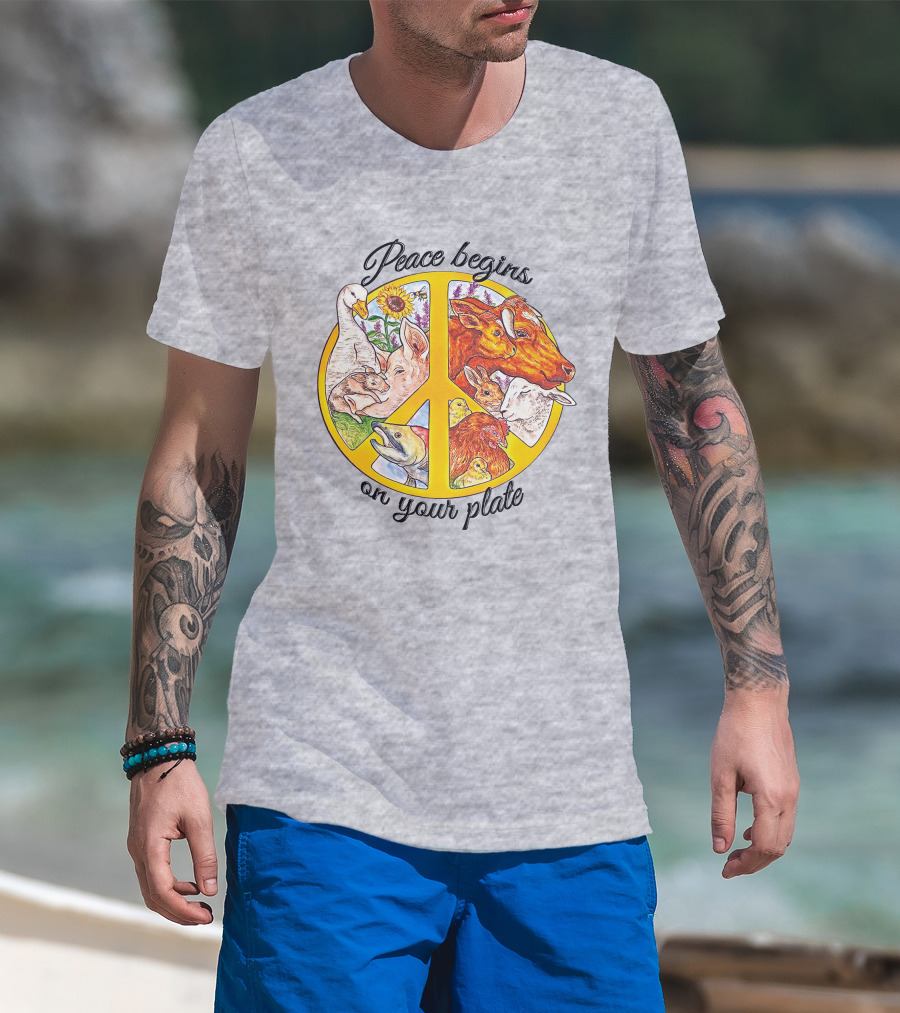 Peace Begins On Your Plate Animal Harmony Peace Sign T-Shirt