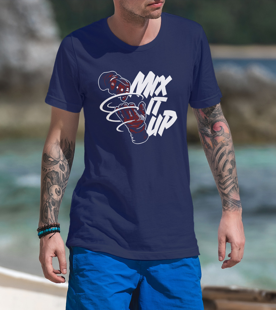 The MMA Boxing Gloves Mix It Up T-shirt is designed for everyday wear and a consistent fit. Fabric is pre-shrunk ring-spun cotton with durable stitching. See the size chart below for exact measurements.