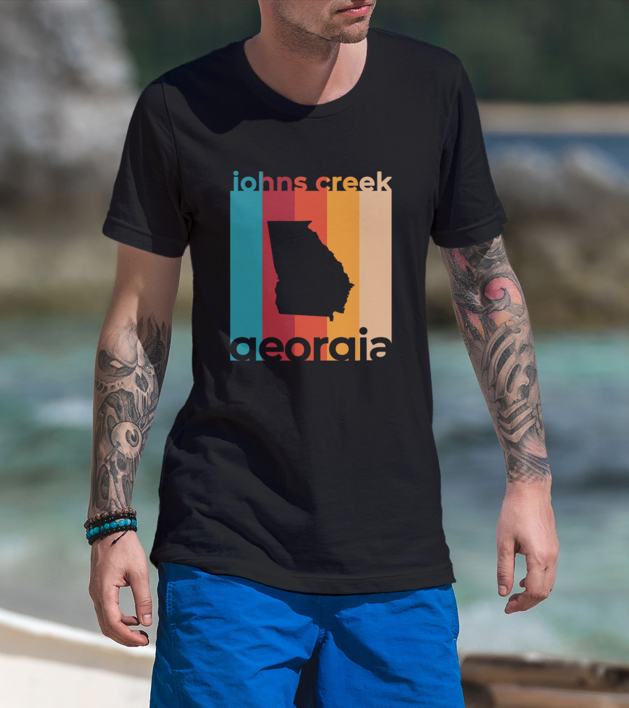 The Johns Creek Georgia Retro State T-shirt is designed for everyday wear and a consistent fit. Fabric is pre-shrunk ring-spun cotton with durable stitching. See the size chart below for exact measurements.