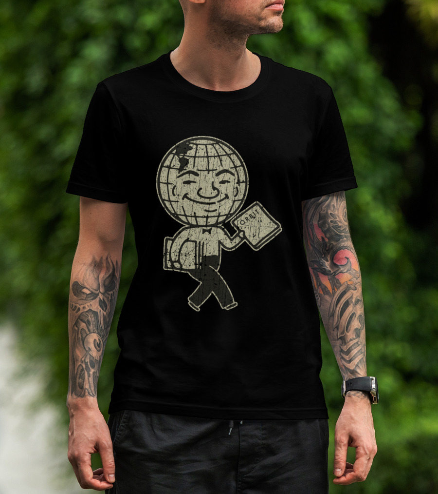 Detroit Orbit Magazine Walking Globe Man Holding Publication T-Shirt