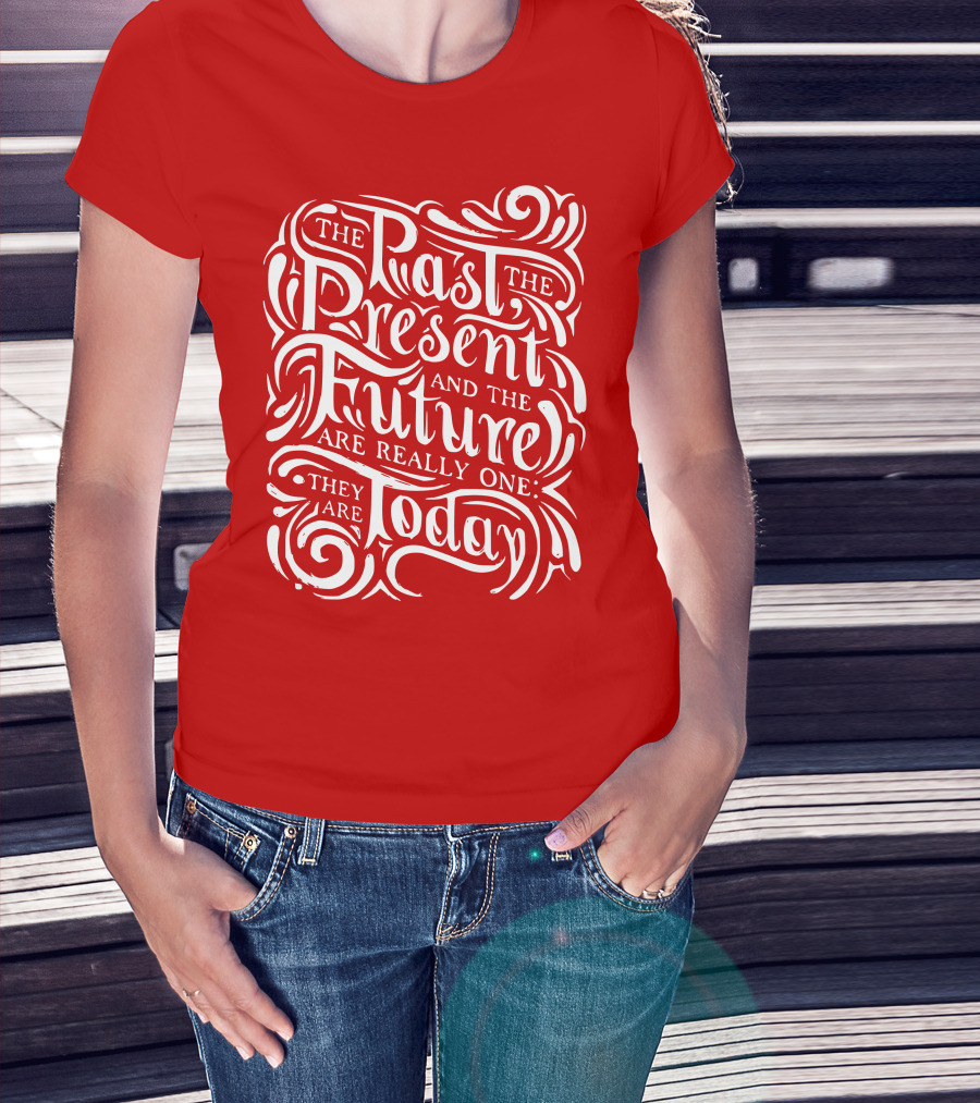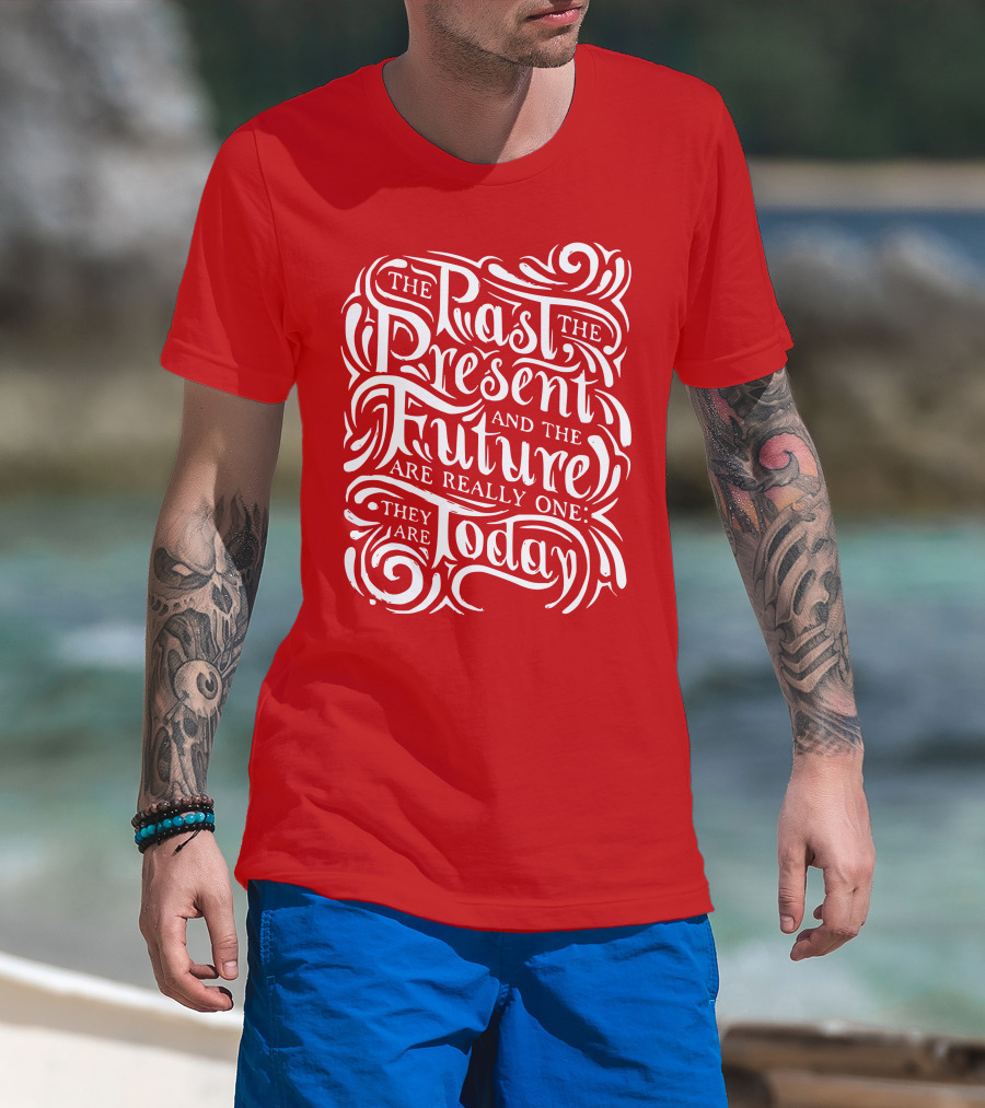 The The Past The Present And The Future Are Really One They Are Today T-shirt is designed for everyday wear and a consistent fit. Fabric is pre-shrunk ring-spun cotton with durable stitching. See the size chart below for exact measurements.