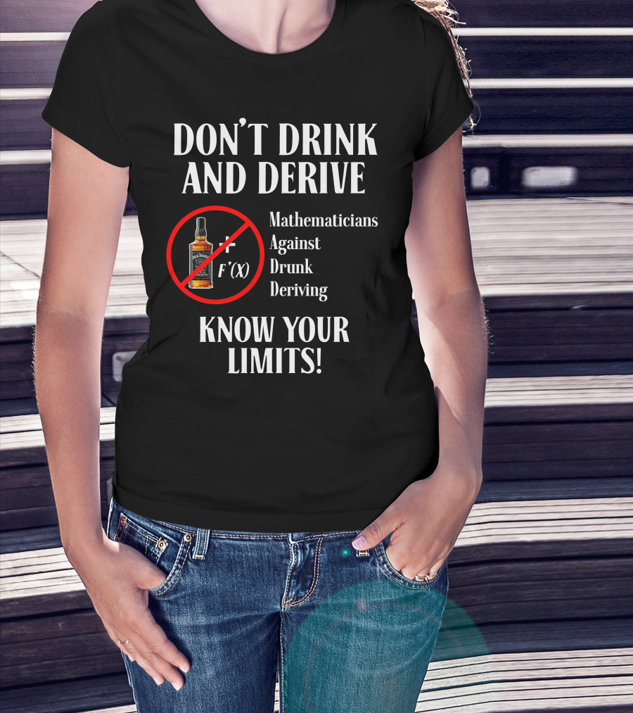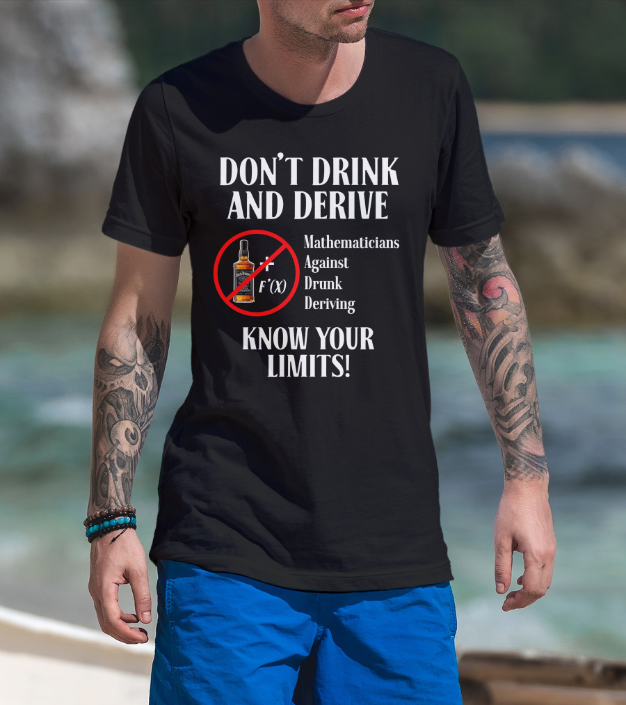DON'T DRINK AND DERIVE Mathematicians Against Drunk Deriving KNOW YOUR LIMITS JACK F'(X) T-Shirt