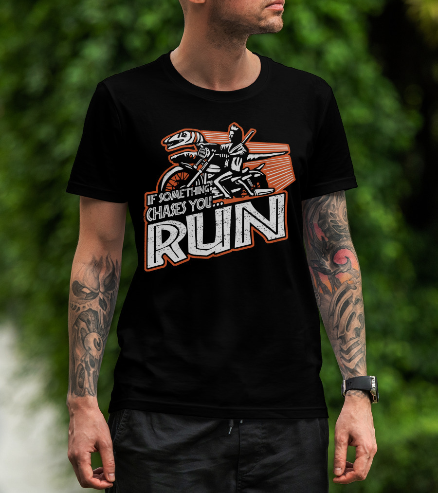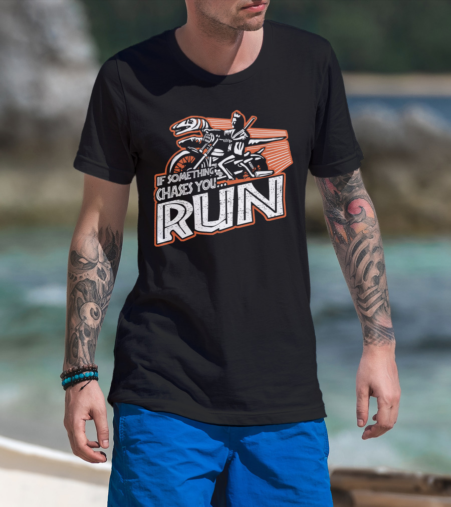 If Something Chases You Run Dinosaur Motorcycle Rider T-Shirt