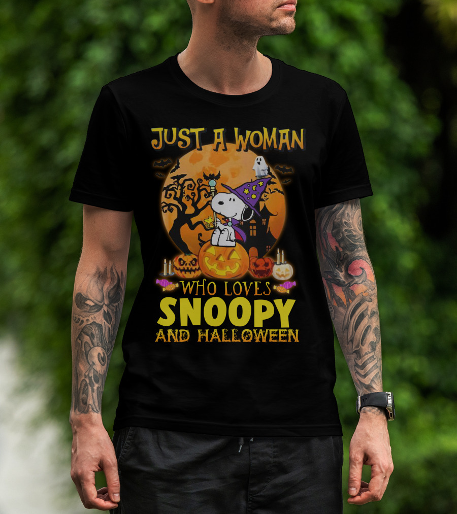 Just A Woman Who Loves Snoopy And Halloween T-Shirt