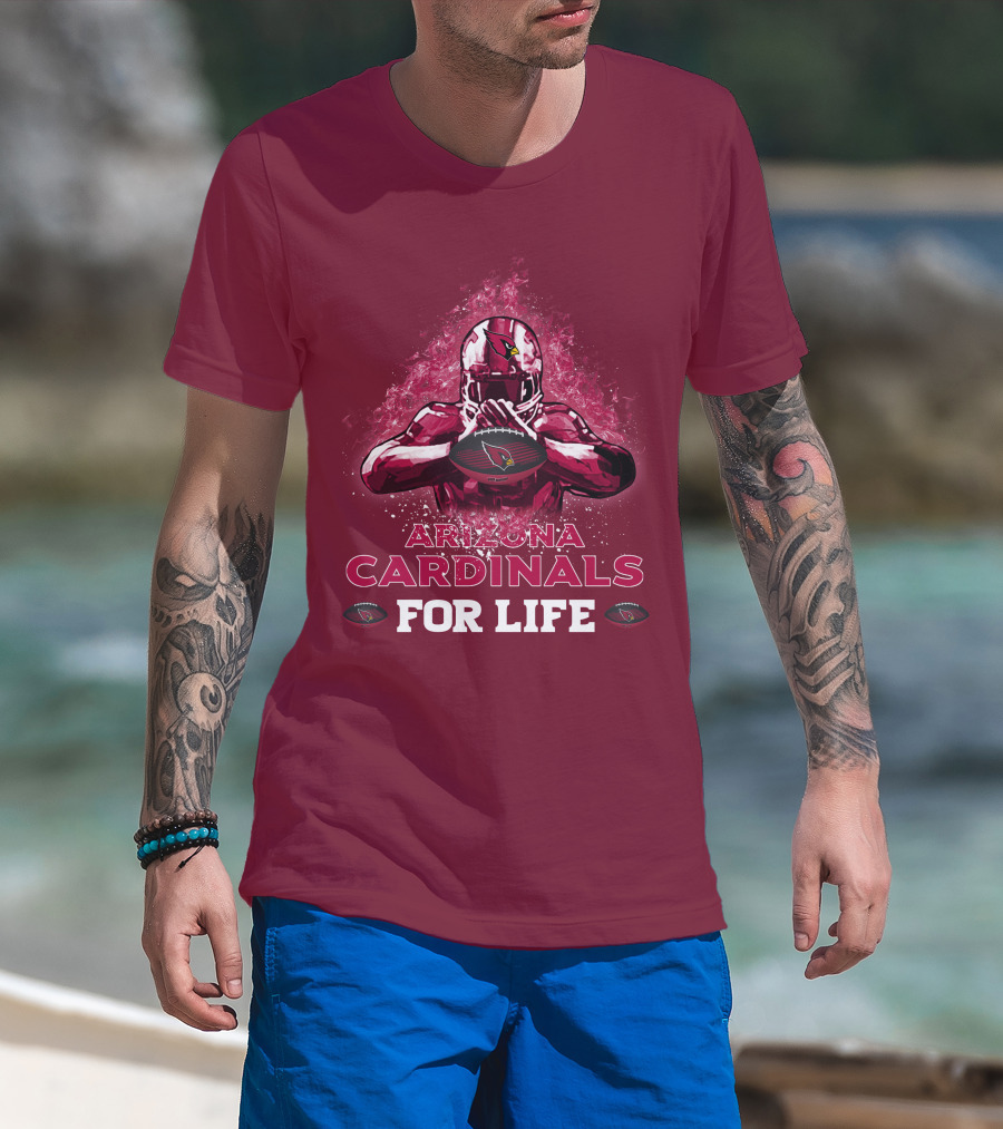 The Arizona Cardinals For Life Football T-shirt is designed for everyday wear and a consistent fit. Fabric is pre-shrunk ring-spun cotton with durable stitching. See the size chart below for exact measurements.