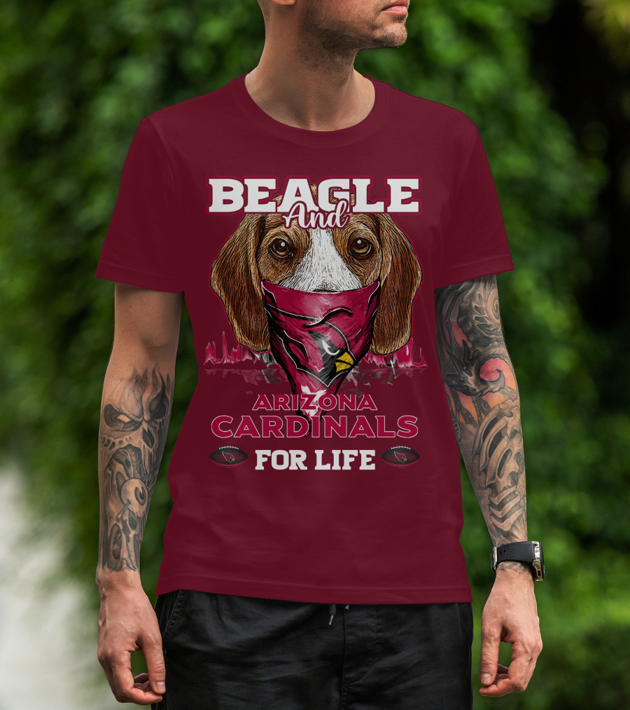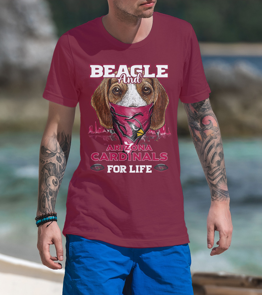 The Beagle and Arizona Cardinals for Life T-shirt is designed for everyday wear and a consistent fit. Fabric is pre-shrunk ring-spun cotton with durable stitching. See the size chart below for exact measurements.