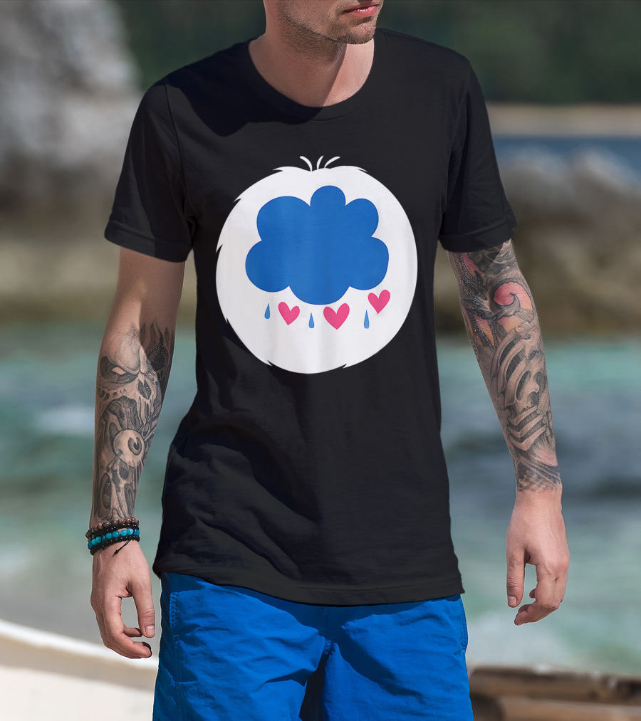 Grumpy Care Bear Blue Cloud With Hearts And Raindrops T-Shirt