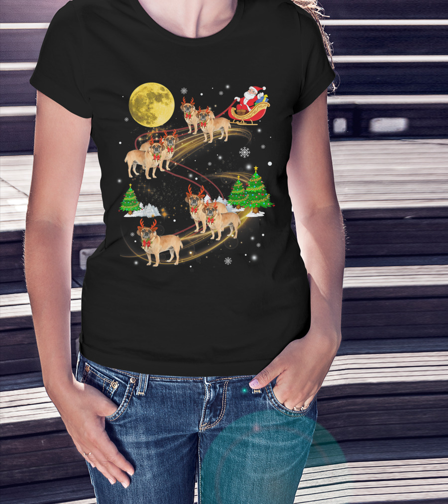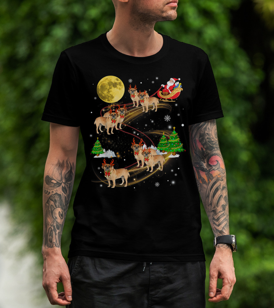 Puggle Reindeer Christmas Santa Sleigh Full Moon Holiday Scene T-Shirt