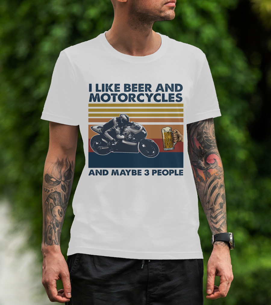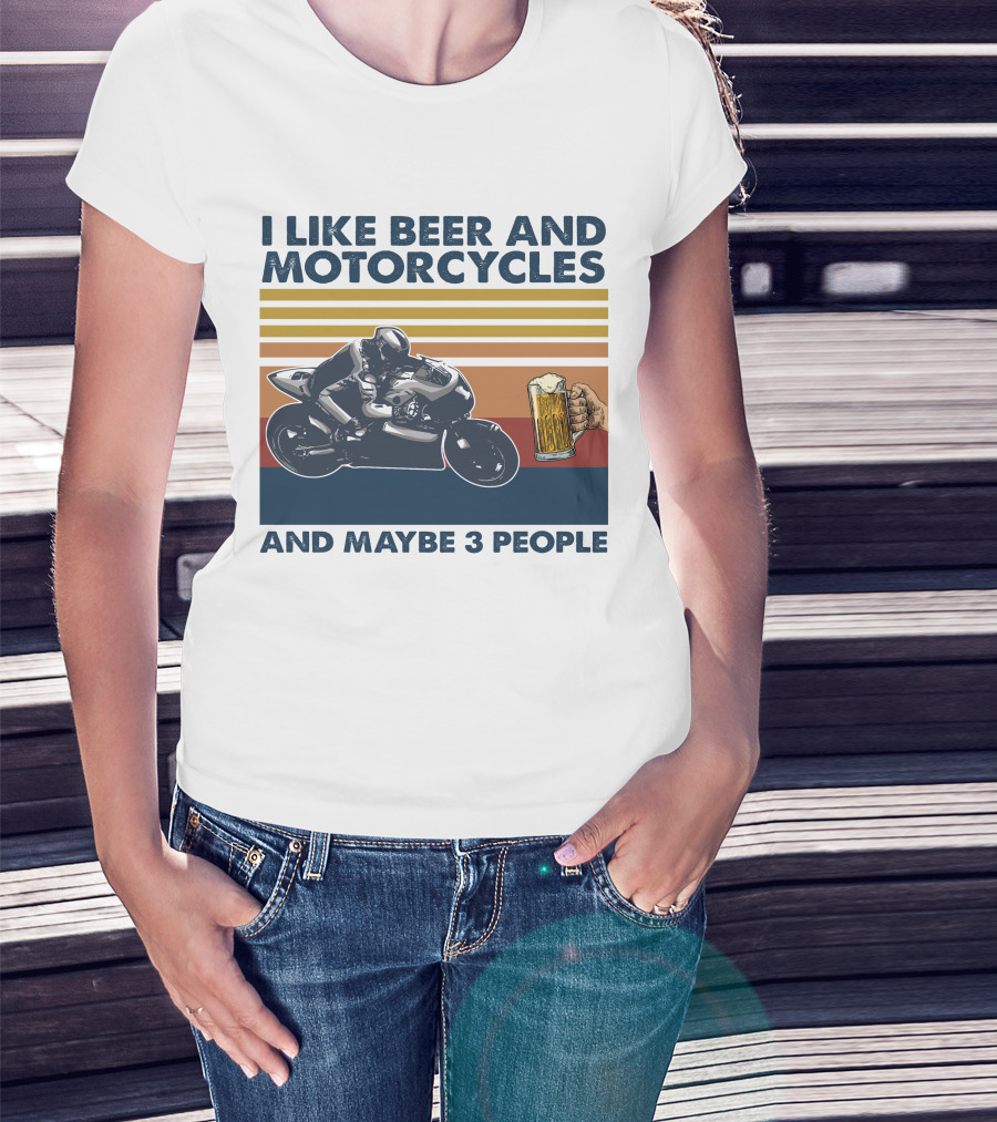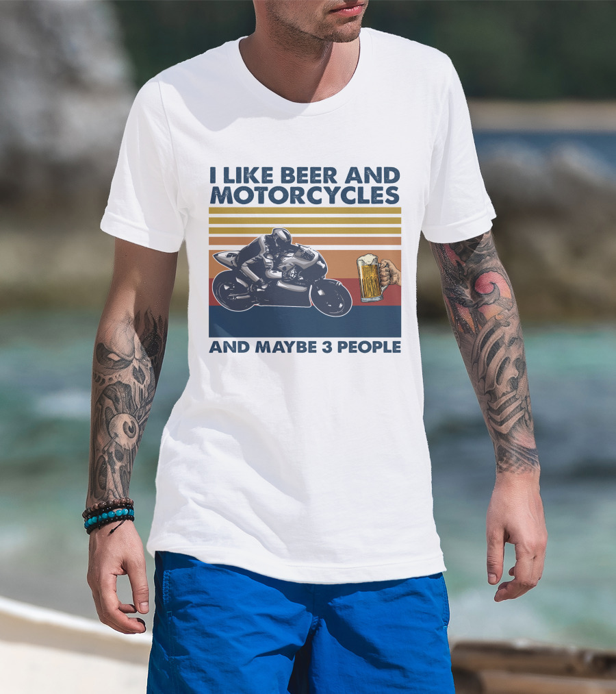 I Like Beer And Motorcycles Vintage Style With Beer Mug And Racer T-Shirt