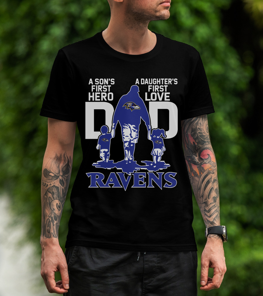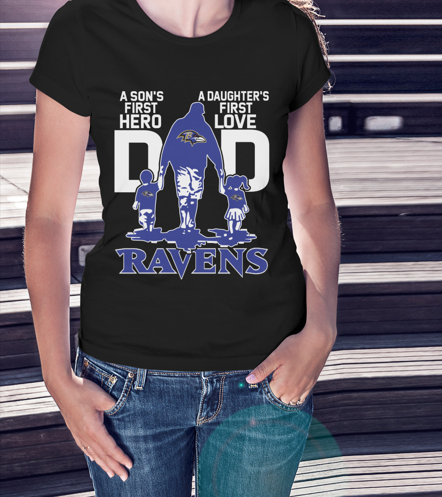 A Son's First Hero A Daughter's First Love Dad Ravens T-Shirt