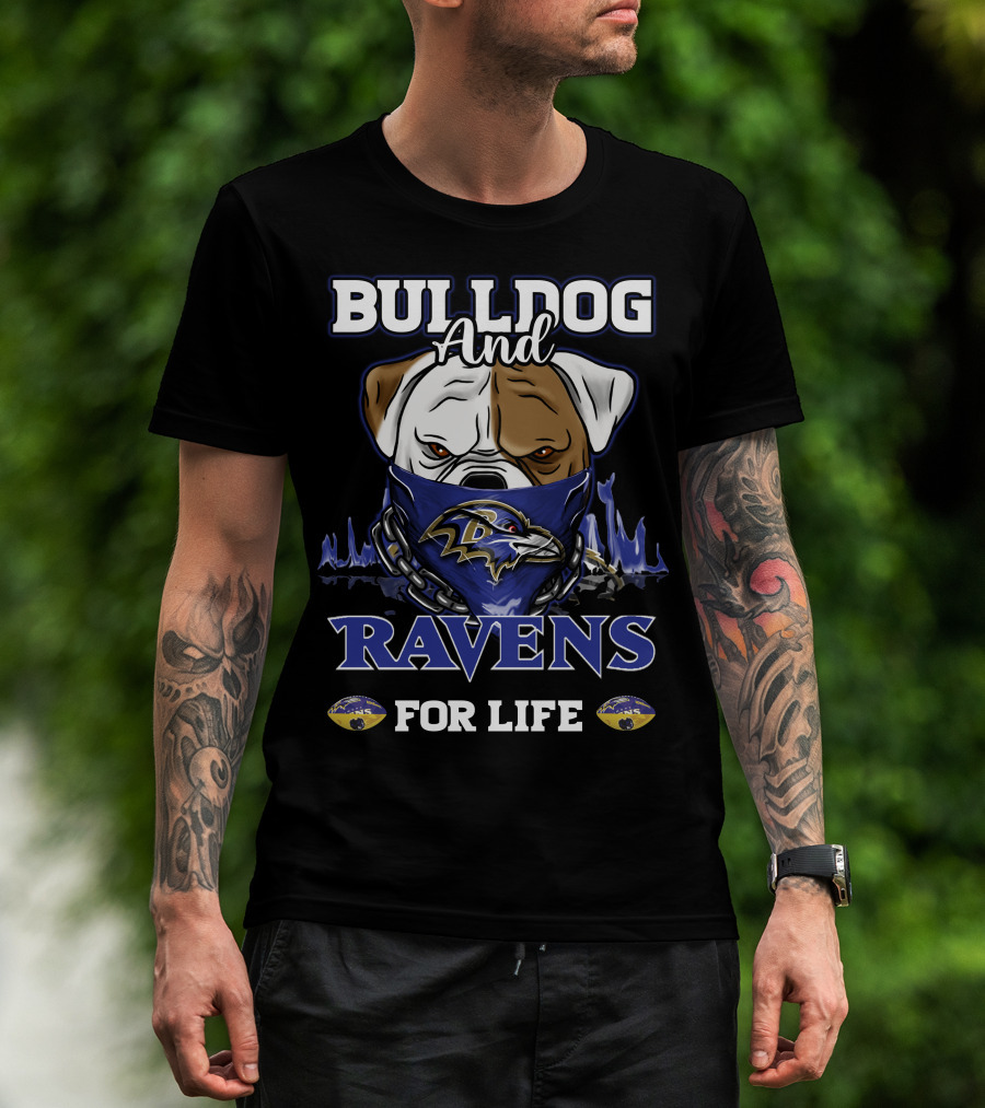The Bulldog and Ravens for Life T-shirt is designed for everyday wear and a consistent fit. Fabric is pre-shrunk ring-spun cotton with durable stitching. See the size chart below for exact measurements.