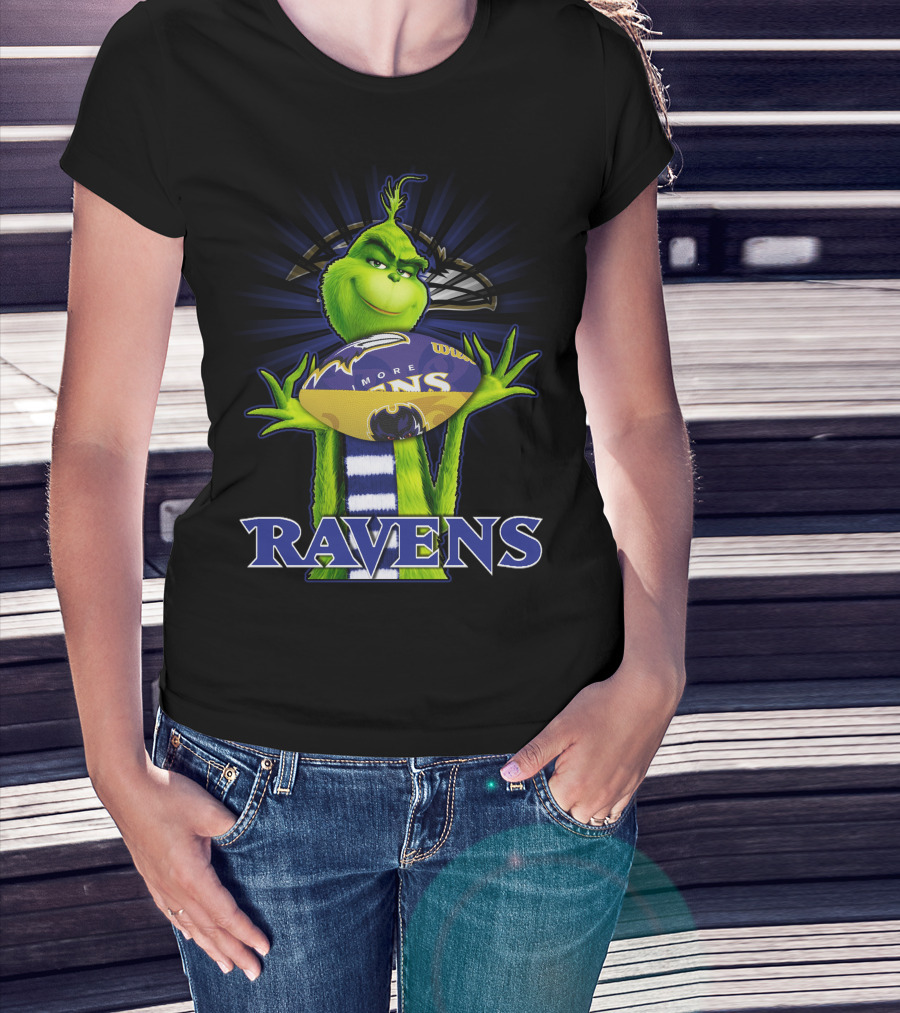 Grinch Holding Baltimore Ravens Football With Ravens Text T-Shirt