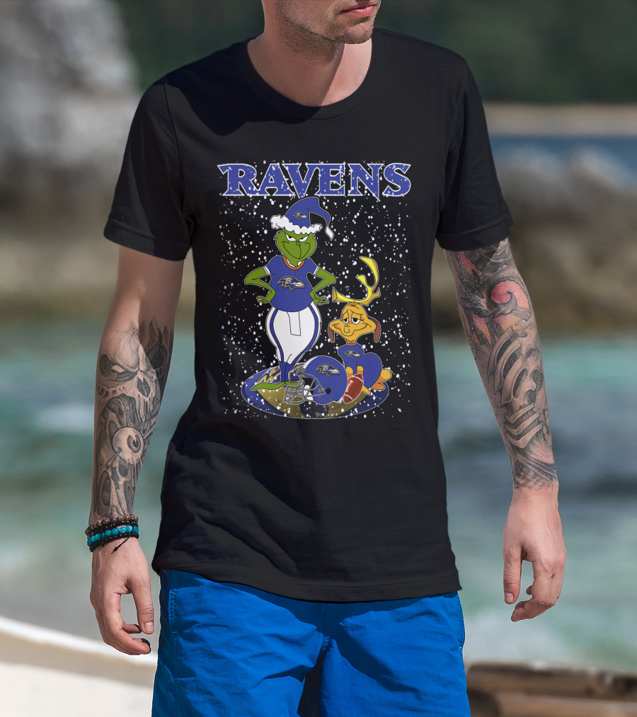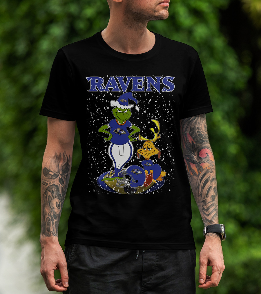 Grinchxmas Ravens Baltimore Football Holiday Scene T-Shirt