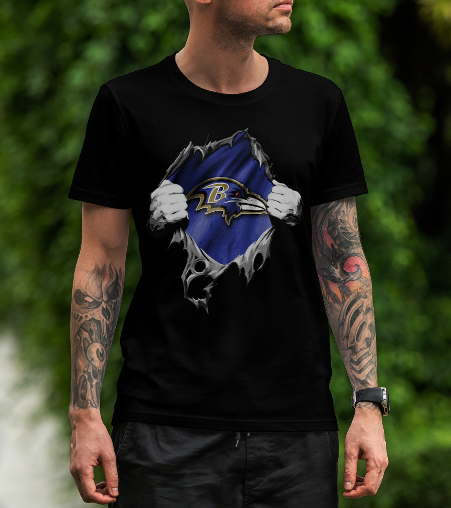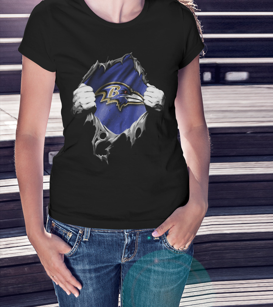 Torn Open Baltimore Ravens Logo With Hands T-Shirt