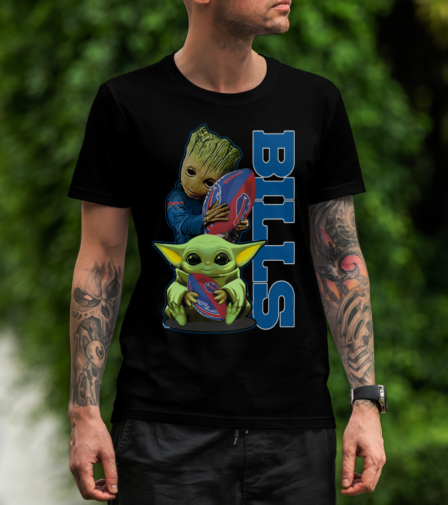 Grzd Buffalo Bills Baby Groot And Baby Yoda Football T-Shirt
