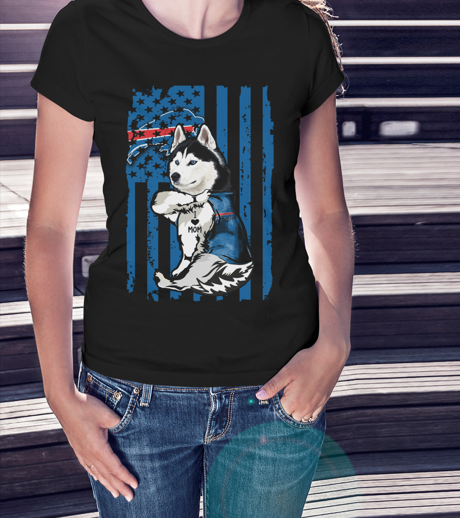 Siberian Husky Mom Buffalo Bills Blue Stars American Flag T-Shirt