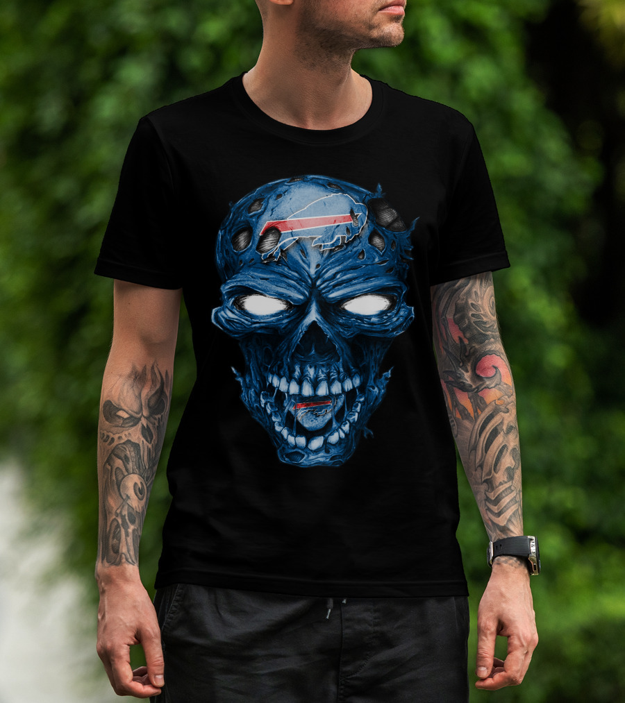The Skull with Buffalo Bills T-shirt is designed for everyday wear and a consistent fit. Fabric is pre-shrunk ring-spun cotton with durable stitching. See the size chart below for exact measurements.