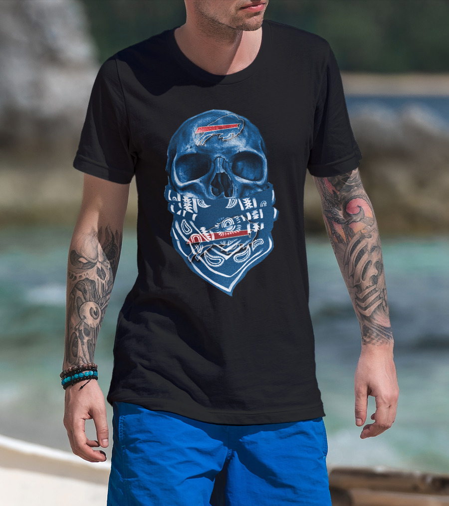 Buffalo Bills Skull Blue Bandana T-Shirt