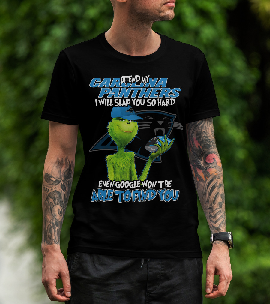 The OFFEND MY CAROLINA PANTHERS I WILL SLAP YOU SO HARD EVEN GOOGLE WON'T BE ABLE TO FIND YOU T-shirt is designed for everyday wear and a consistent fit. Fabric is pre-shrunk ring-spun cotton with durable stitching. See the size chart below for exact measurements.