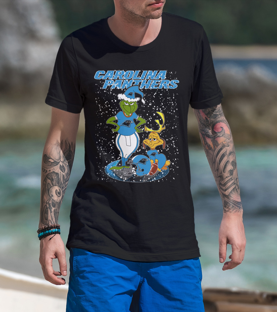 CAROLINA PANTHERS Grinch Christmas Snow Scene With Grinch And Max T-Shirt