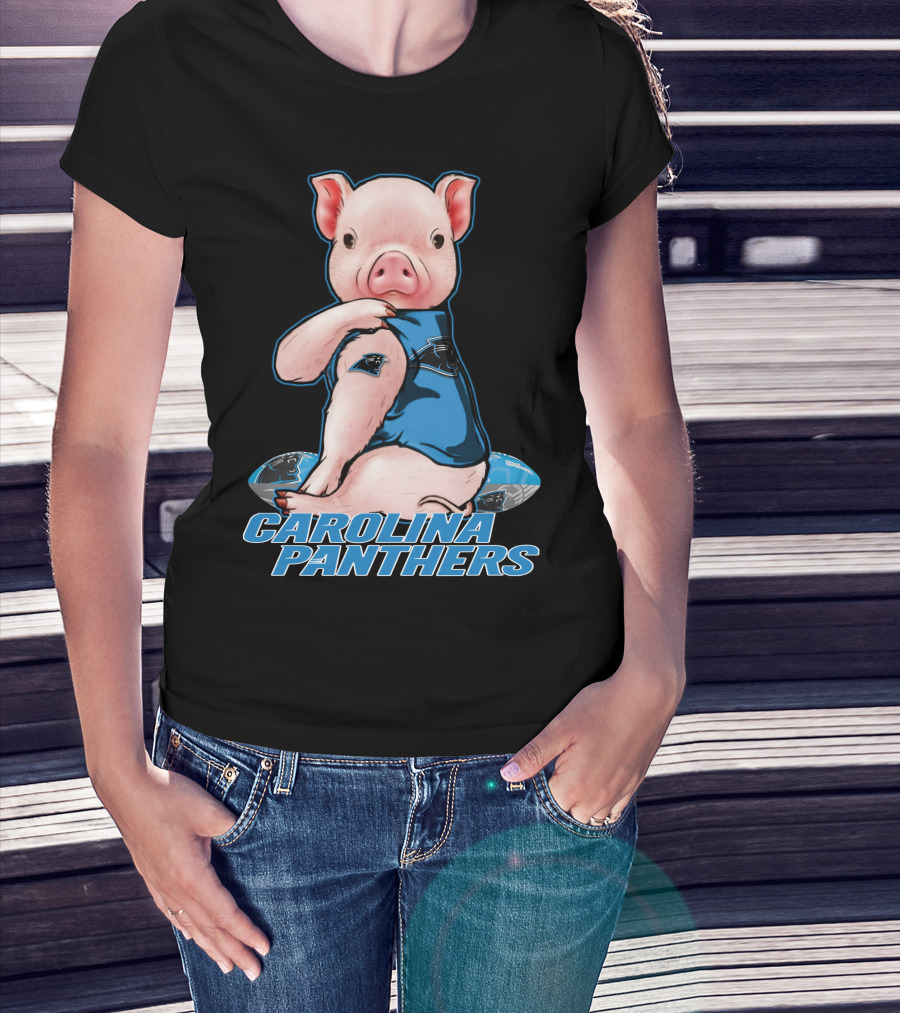 CAROLINA PANTHERS Pig In Panthers Jersey On Football T-Shirt