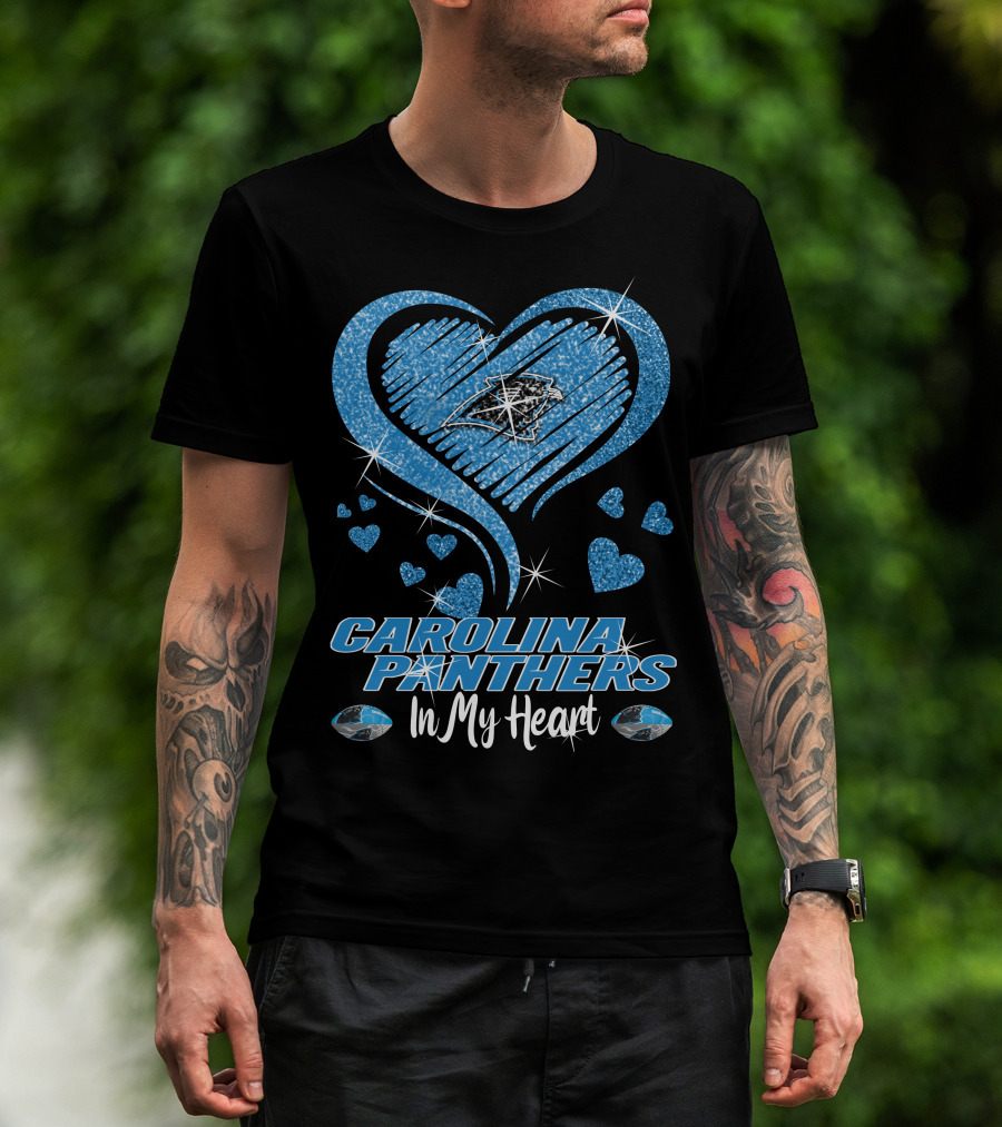 CAROLINA PANTHERS In My Heart Sparkling Blue Heart T-Shirt