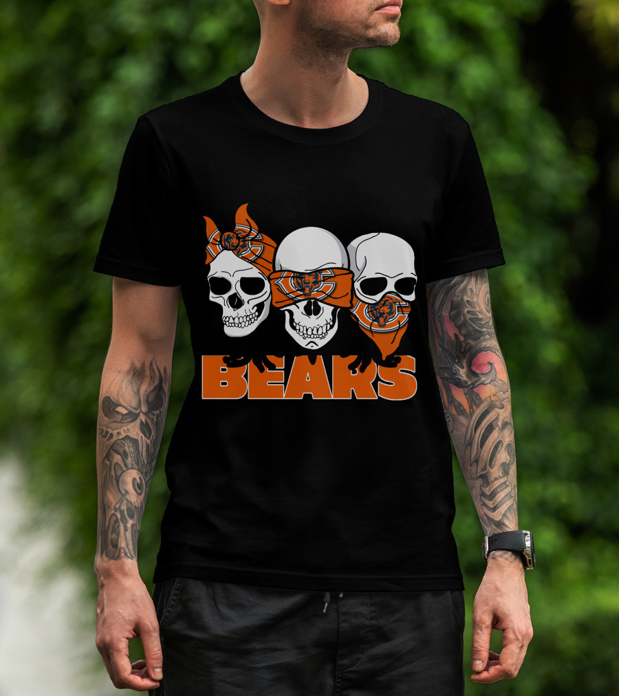 The 3 Skull BEARS Bandana Trio T-shirt is designed for everyday wear and a consistent fit. Fabric is pre-shrunk ring-spun cotton with durable stitching. See the size chart below for exact measurements.