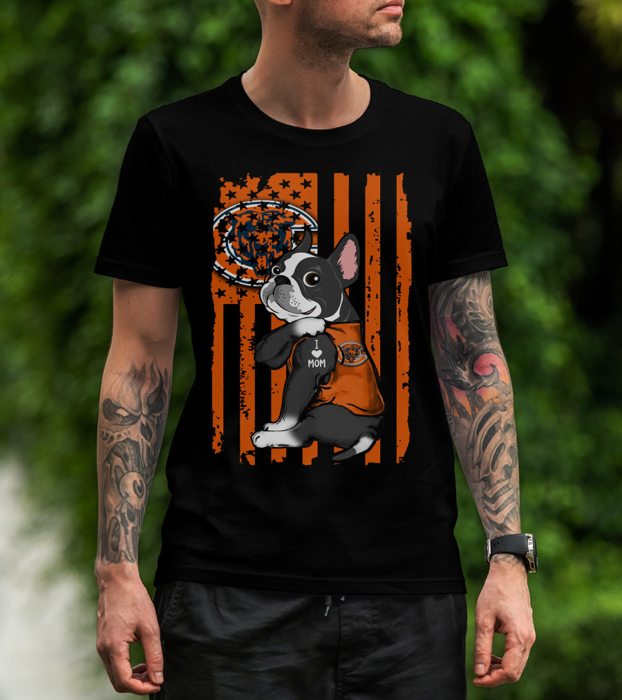Boston Terrier CHICAGO BEARS I Love Mom Fan T-Shirt