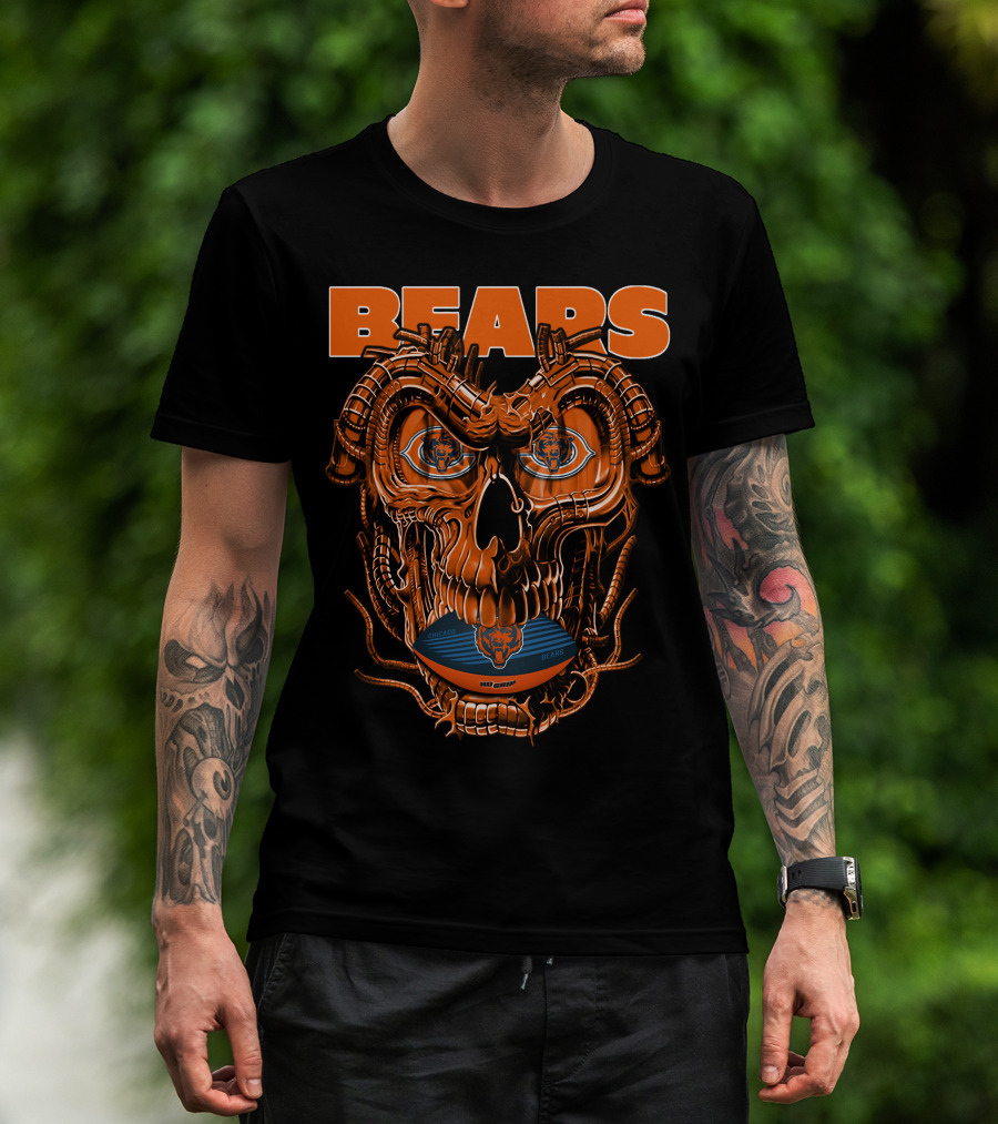 Dragonskull BEARS CHICAGO Football Skulldesign T-Shirt