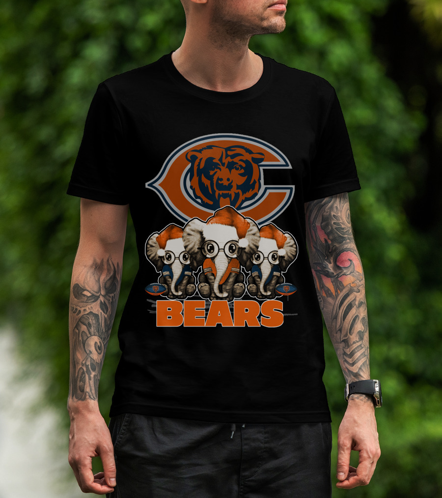 The CHICAGO BEARS Christmas Elephants with Santa Hats T-shirt is designed for everyday wear and a consistent fit. Fabric is pre-shrunk ring-spun cotton with durable stitching. See the size chart below for exact measurements.