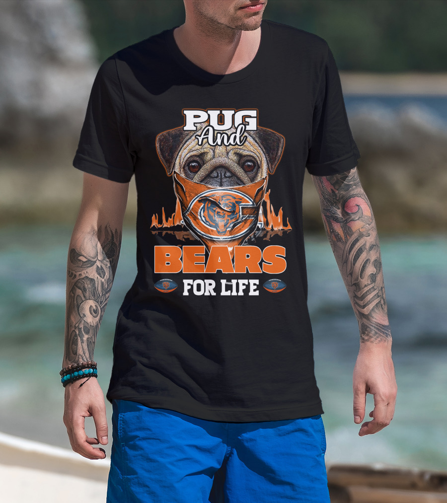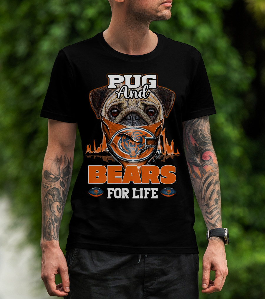 The Pug and Bears For Life Chicago Bears T-shirt is designed for everyday wear and a consistent fit. Fabric is pre-shrunk ring-spun cotton with durable stitching. See the size chart below for exact measurements.