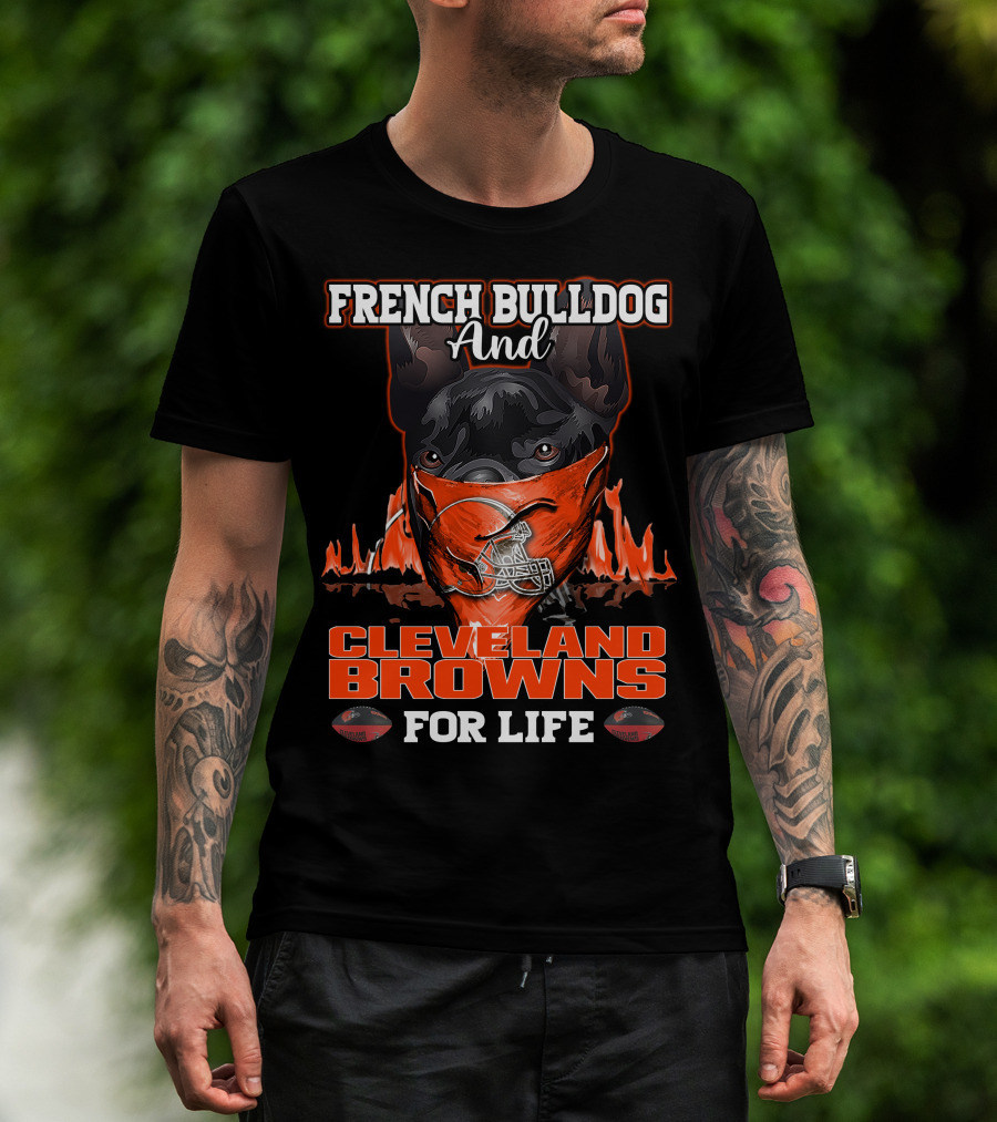FRENCH BULLDOG AND CLEVELAND BROWNS FOR LIFE T-Shirt