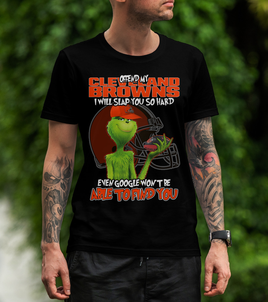 Offend My Cleveland Browns I Will Slap You So Hard Even Google Won't Be Able To Find You Grinch T-Shirt
