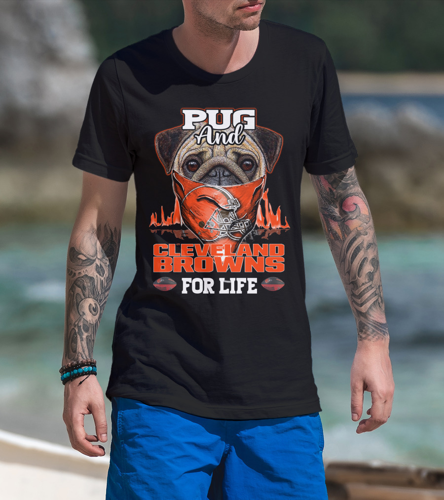 Pug And CLEVELAND BROWNS For Life T-Shirt