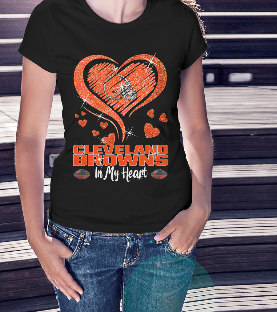 CLEVELAND BROWNS Glitter Heart Football In My Heart T-Shirt
