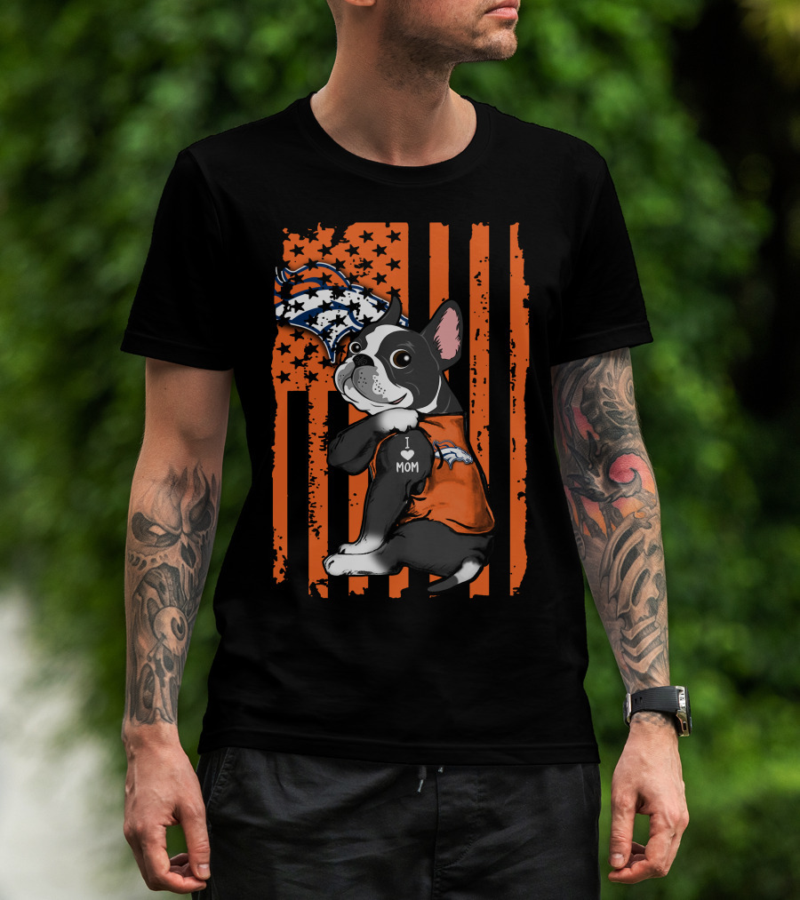 Boston Terrier I Love Mom Denver Broncos American Flag Stars Orange T-Shirt
