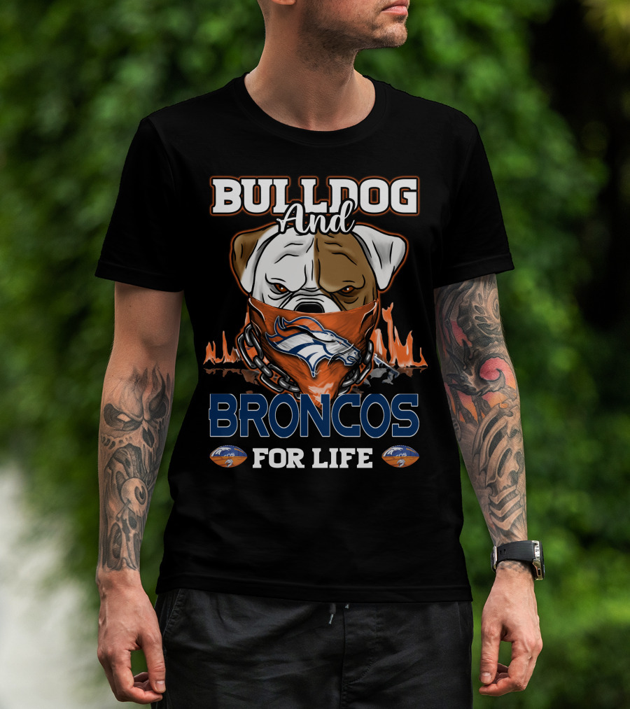 BULLDOG AND BRONCOS FOR LIFE DENVER BRONCOS T-Shirt